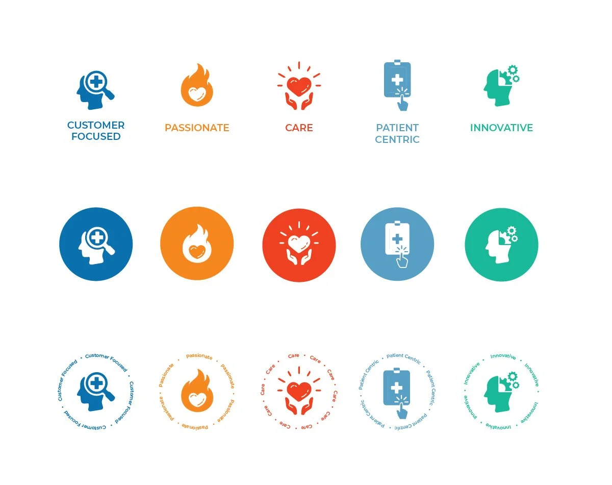 Array of icons for efficient communication and visual reinforcement of company values